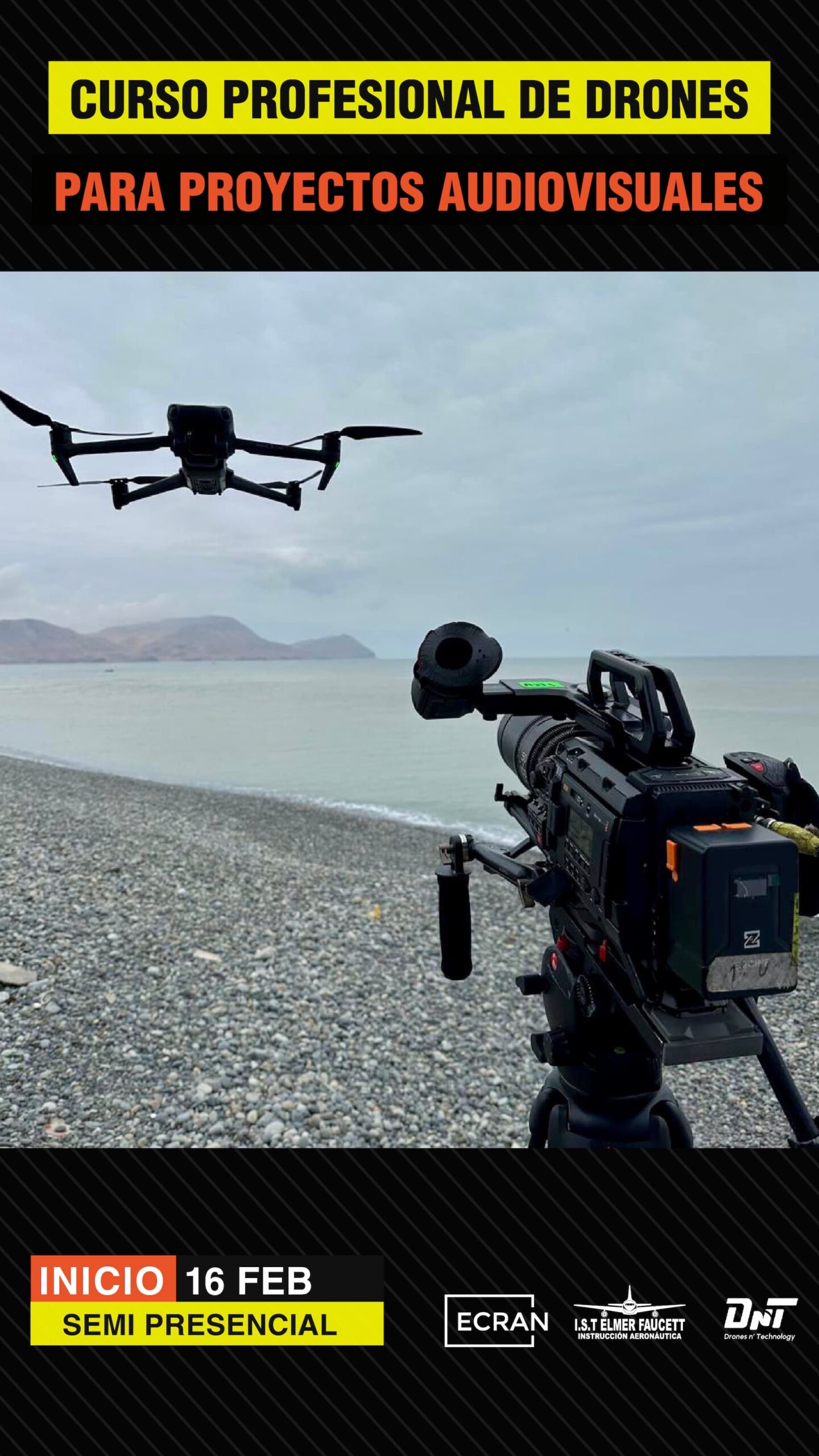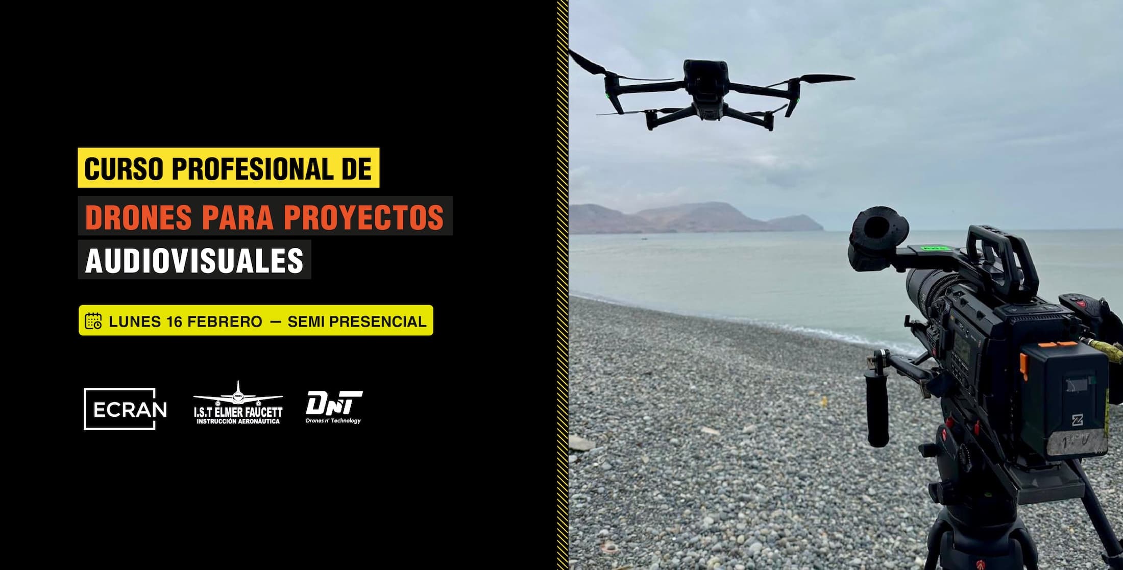 Este curso combina la trayectoria del Instituto de aviación Elmer Faucett y el conocimiento audiovisual de la Escuela Ecran, para convertirte en un operador de cámara de drones altamente competente y autorizado.